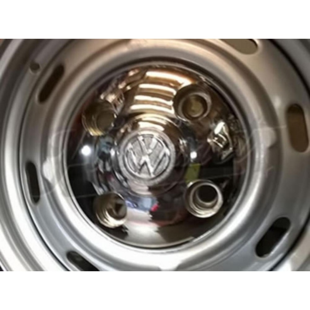 Taza central plástica cromada con logo Volkswagen.